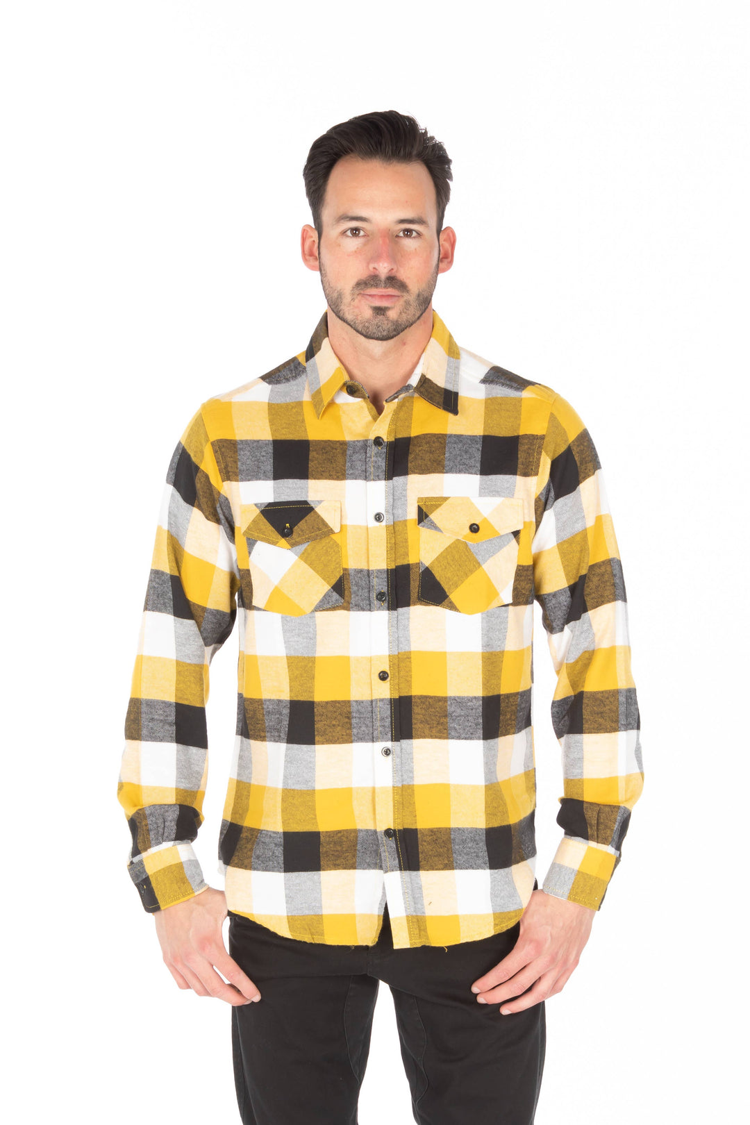 Men's Yellow Plaid Flannel Long Sleeve Shirt