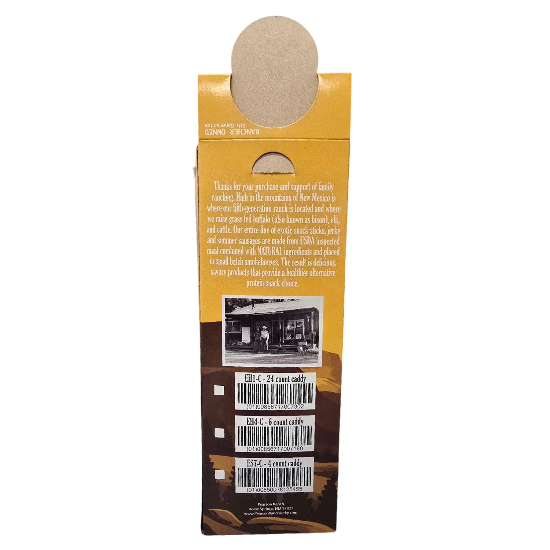 A fun PDQ caddy that includes 24 of our 1 ounce Elk Hickory Snack Sticks.