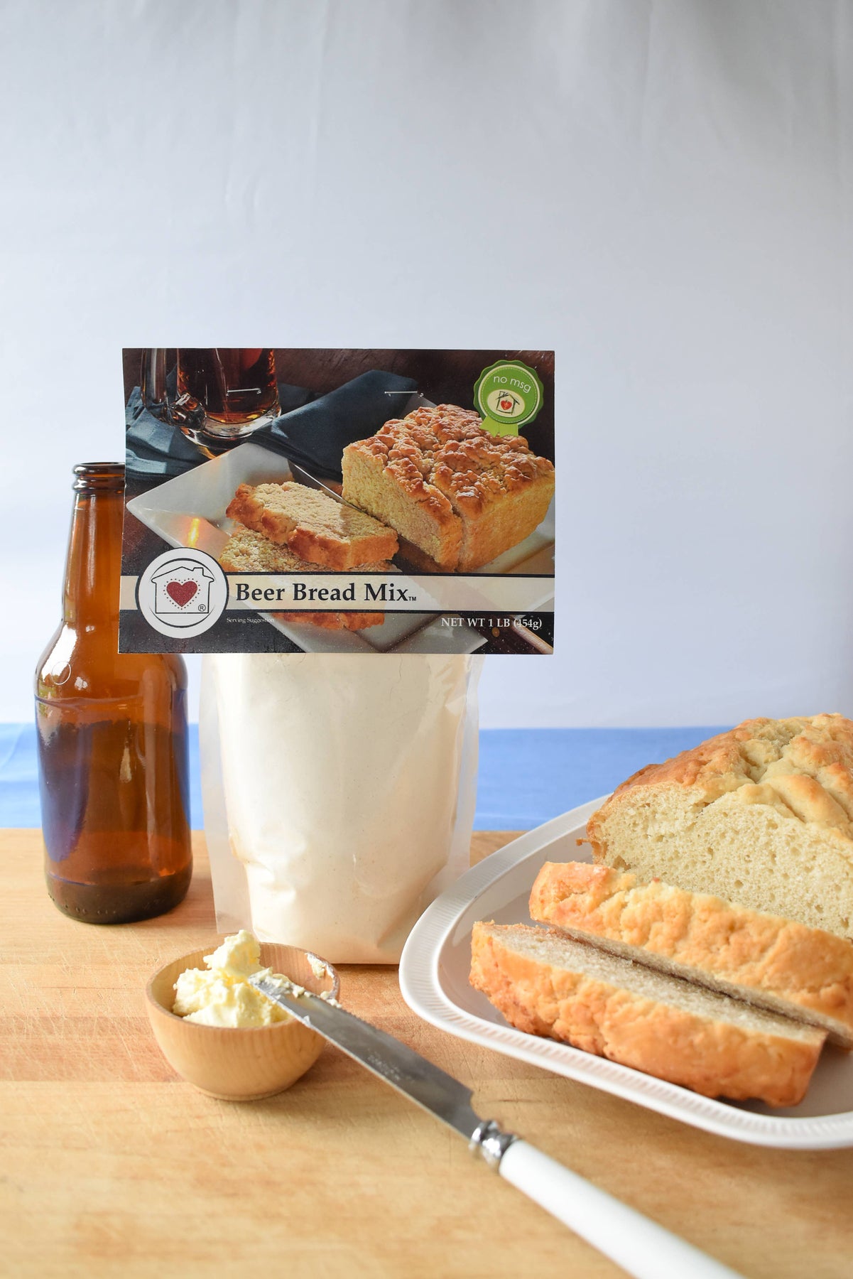 This bread mix is super simple! Just add butter and beer to make a delicious moist loaf of bread. The old fashioned taste of our beer bread is the perfect compliment to our soup mixes. - No MSG. - Vegan. - Contains Wheat