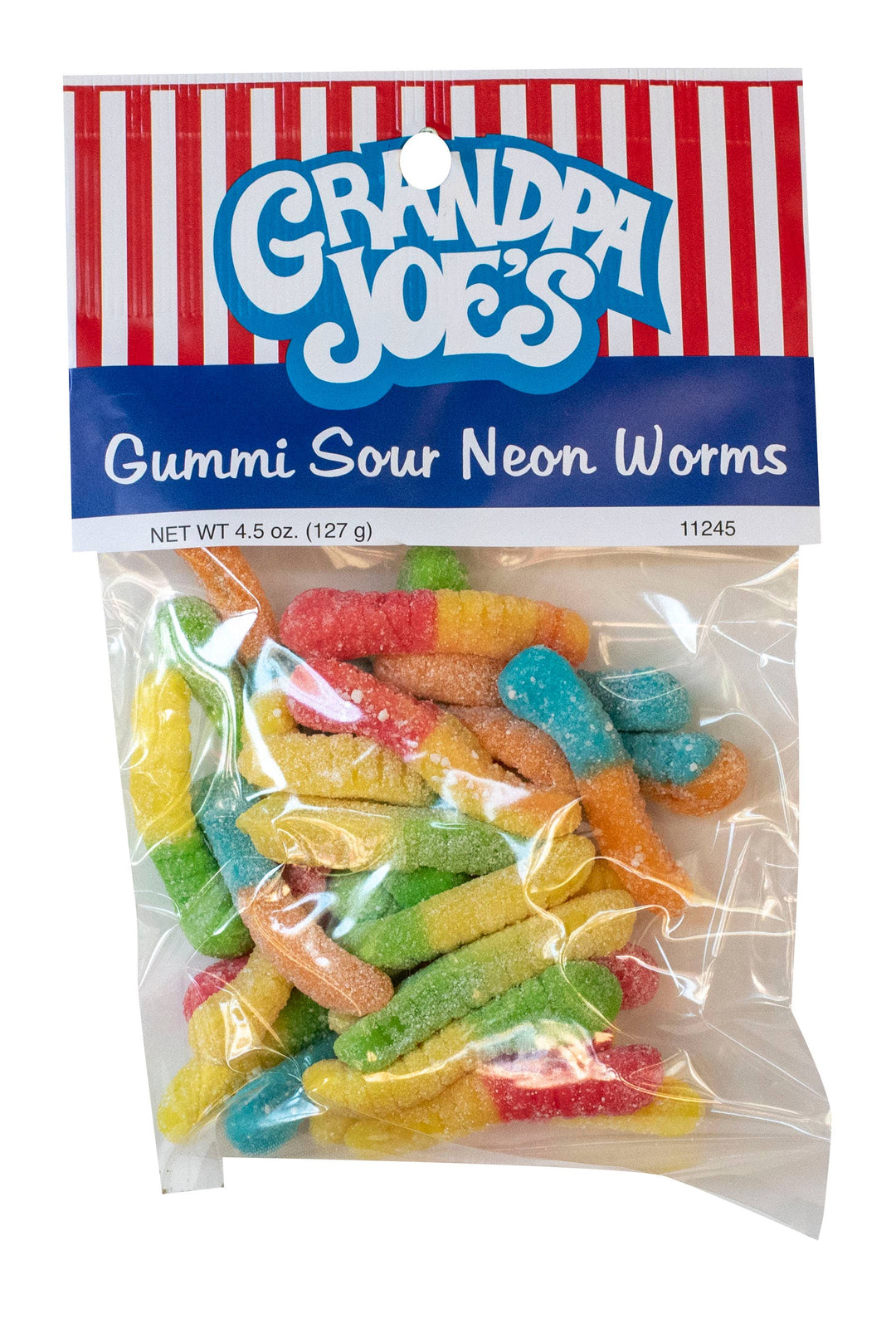 Grandpa Joe's Peg Bags, Sour Neon Worms, 4.5oz, 12 Ct Case