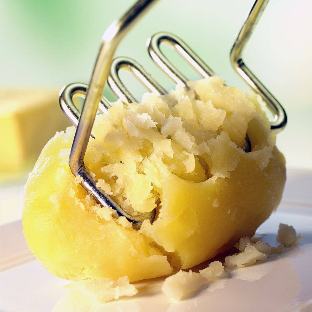 HIC Kitchen’s Extra-Long Potato Masher quickly turns cooked potatoes into smooth, creamy mash with less effort and fewer lumps. Its extra-long design easily reaches the bottom of deep pots, making mashing faster without dirtying extra bowls. Crafted with a sturdy wooden handle and single-piece stainless steel wire, this masher is ideal for potatoes, cauliflower, squash, yams, carrots, and more. It also tackles tougher tasks, like mixing cheese into potatoes or pressing moisture from grated vegetables for crispier hash browns, latkes, or perfectly drained greens for quiche and casseroles.
