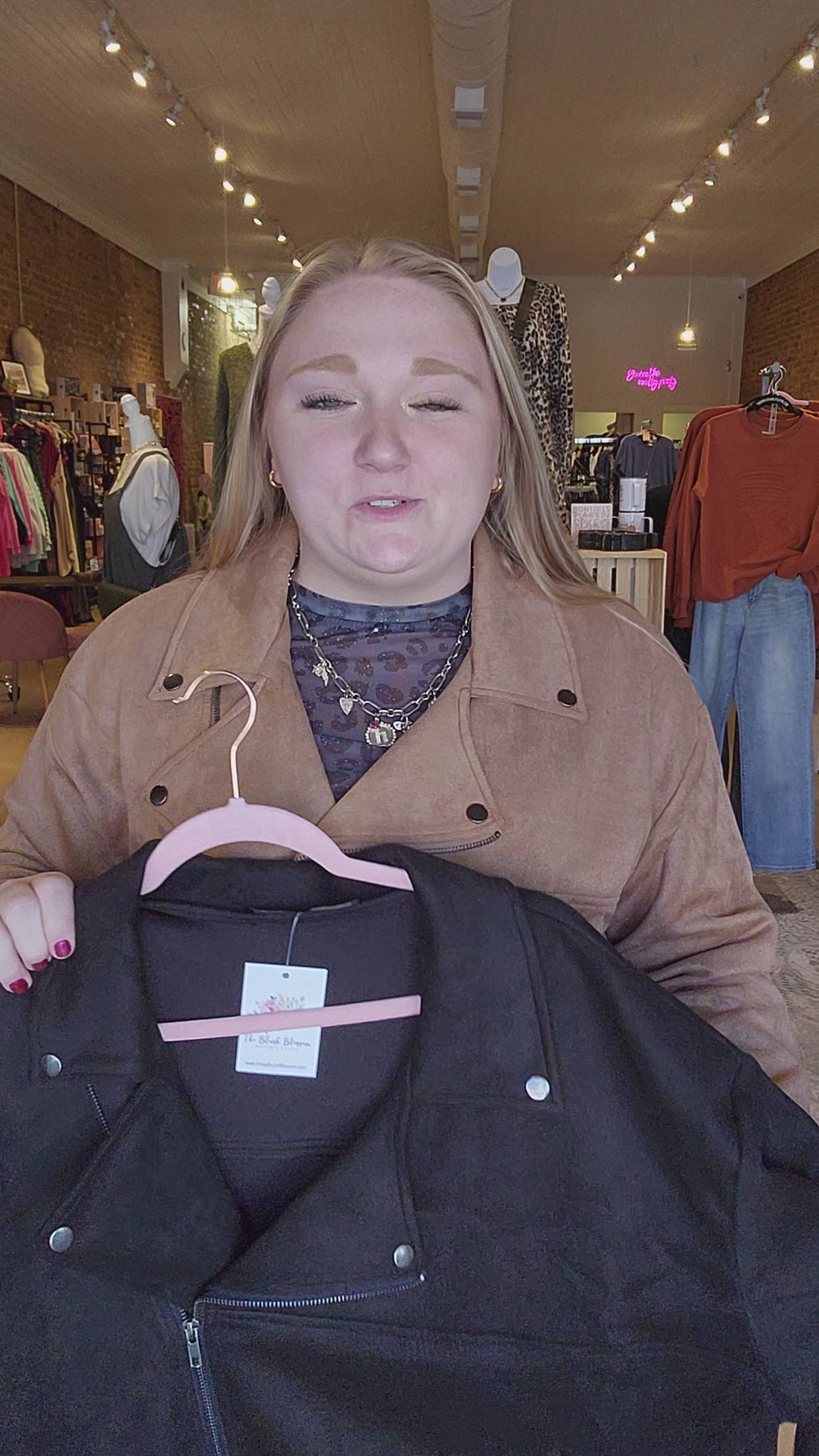 This Suede Moto Jacket is your new go-to for sleek, stylish vibes that never fade. Super soft to the touch and crafted with attention to the little details, it’s designed to flatter true to size. Slip into this jacket and instantly upgrade your look with effortless cool and comfy charm. Perfect for adding a playful edge to any outfit!