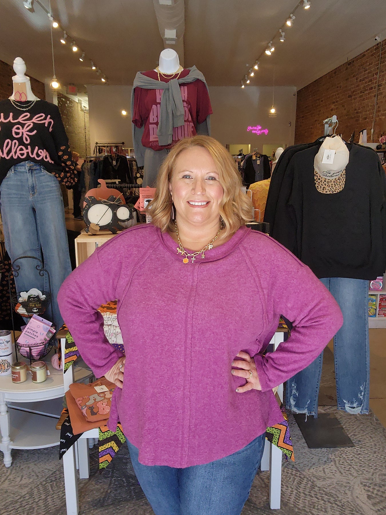 The Exposed Hem Top offers a cozy and relaxed oversized fit, with a scoop neck and stylish side splits. Choose from a variety of colors, perfect for any occasion. Stay comfortable and fashionable with this must-have top.
