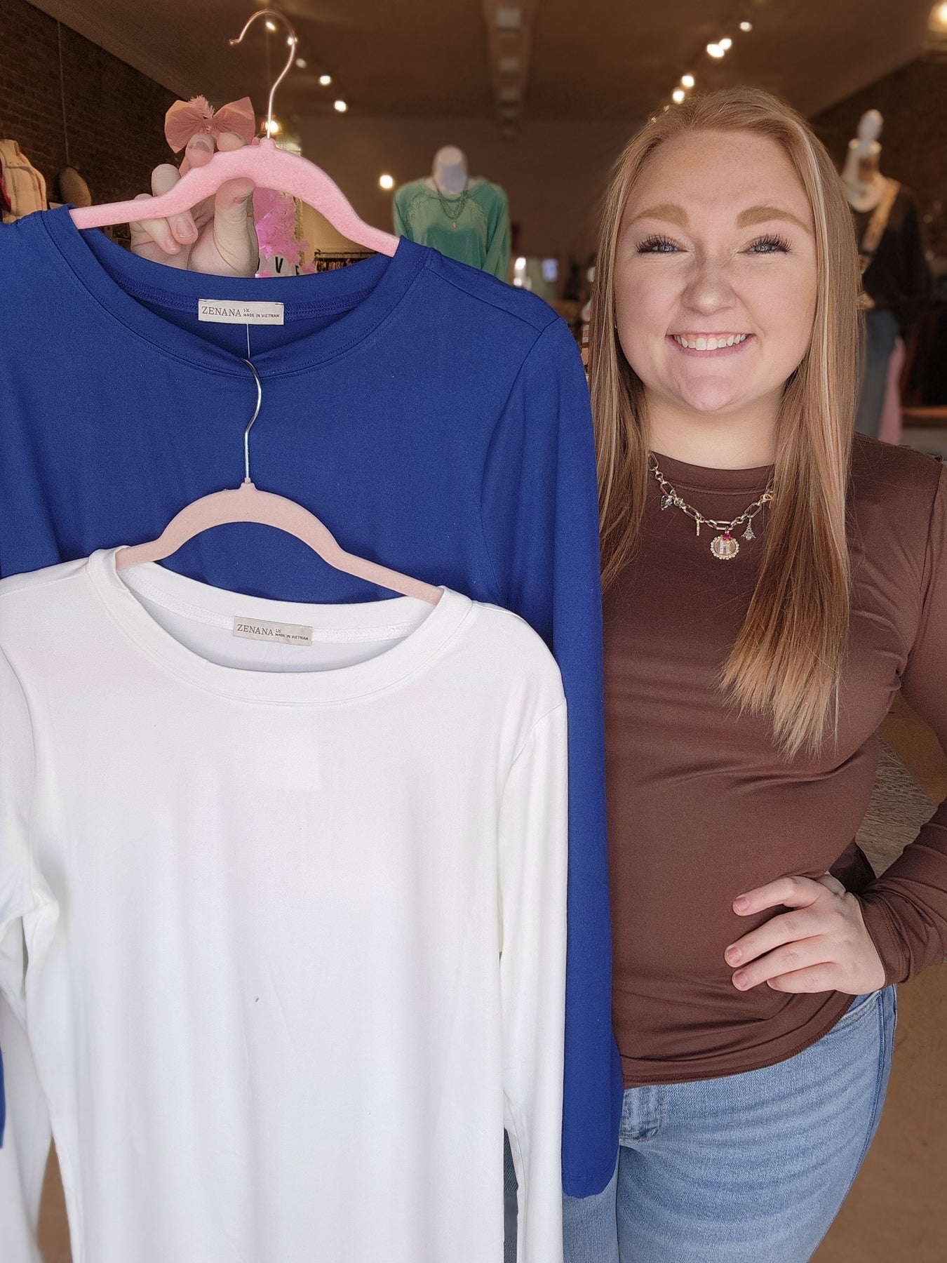 Slip into pure comfort with our Crew Neck Butter Long Sleeve—a wardrobe essential that's as soft as it sounds. This fitted layer glides smoothly under jackets and sweaters without the bulk, keeping you cozy without the extra volume. True to size and buttery smooth, it's the perfect base for layering that actually feels like a hug. Your new go-to piece for effortless style.