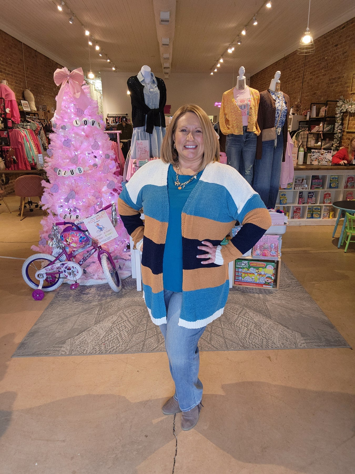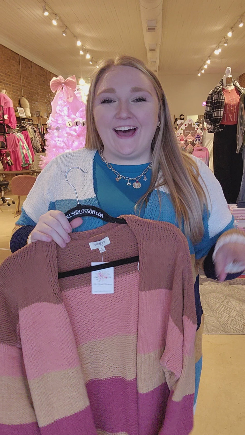 Wrap yourself in cloud-like comfort with this Stripe Chenille Feel Cardigan—the perfect layer that's impossibly soft without weighing you down. Designed with a roomy fit that lets you move freely, it's true to size so you can grab your usual and go. Whether you're lounging at home or stepping out for errands, this cozy essential keeps you feeling hugged all day long.