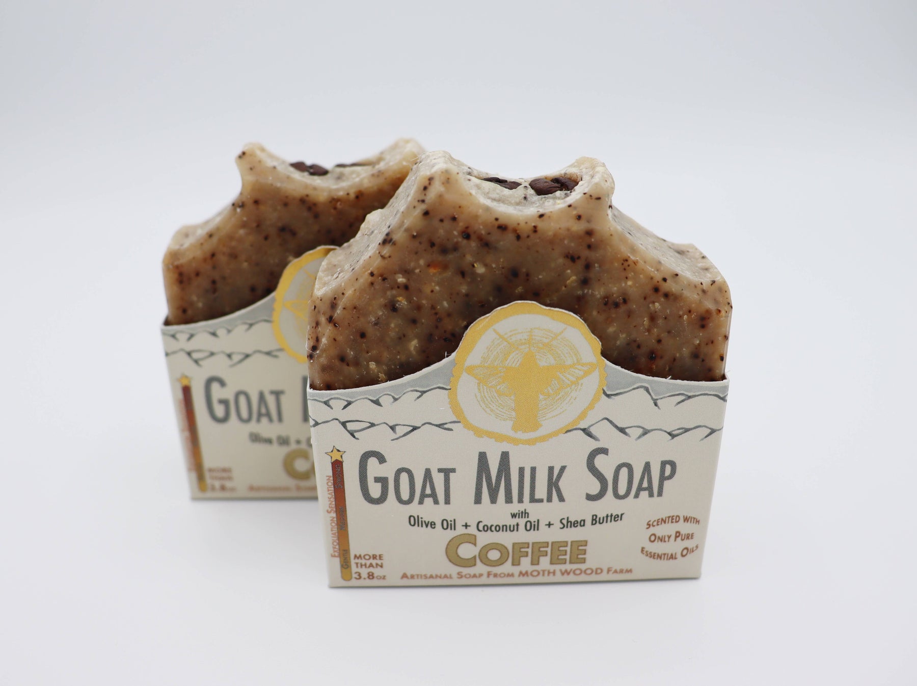 Coffee is a powerful exfoliating soap with a subtle coffee & cinnamon scent. It features espresso coffee grounds throughout and makes an excellent bar soap for gardeners, farmers, artists, or anyone who needs a little extra scrubbing! All of our soaps have an ounce of goat milk in every bar. Our goat milk comes from our own herd of Nigerian Dwarf goats who have the fattiest milk of all goats. Extra fat = extra luxurious soap! Always palm-free, preservative-free, artificial ingredient free. Our soaps have a spectacular lather and rinse away cleanly while still leaving skin moisturized.