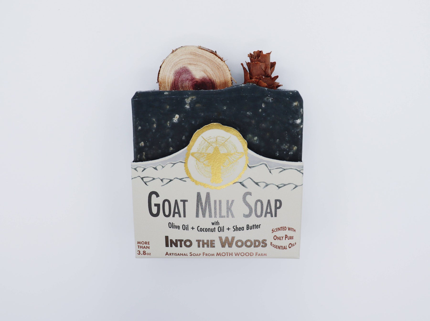 Ingredients: Olive oil, organic virgin coconut oil, raw goat milk, organic raw unrefined shea butter, rice bran oil, lye, bentonite clay, activated charcoal, pine essential oil, fir essential oil, cedar essential oil, patchouli essential oils.