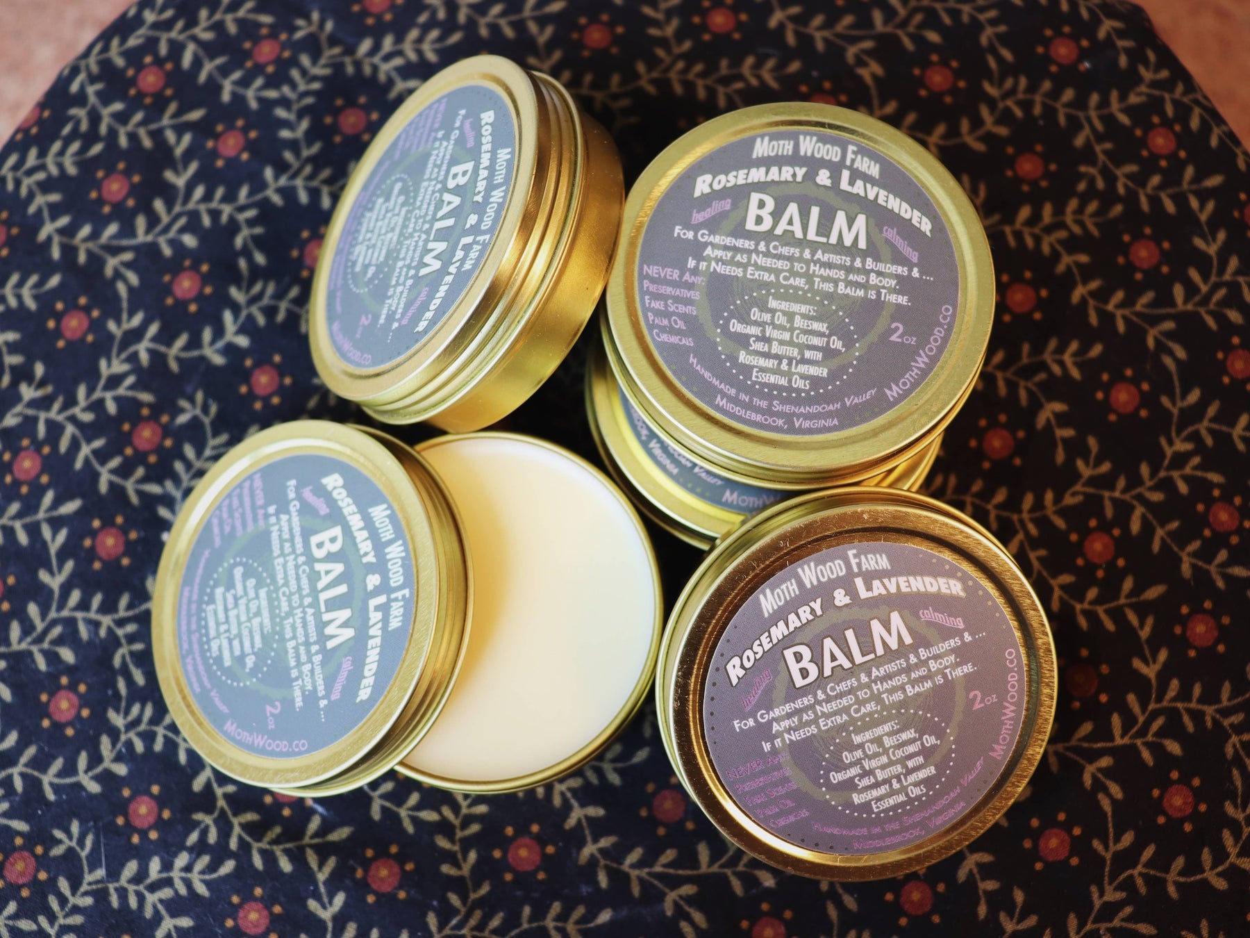 This all purpose balm is perfect for gardeners, chefs, artists, builders, and anyone who needs a little extra self care. It also makes a great everyday moisturizer for all parts of your body. It has a medium firmness with a balanced blend of oils and beeswax. A mild scent of lavender & rosemary.
