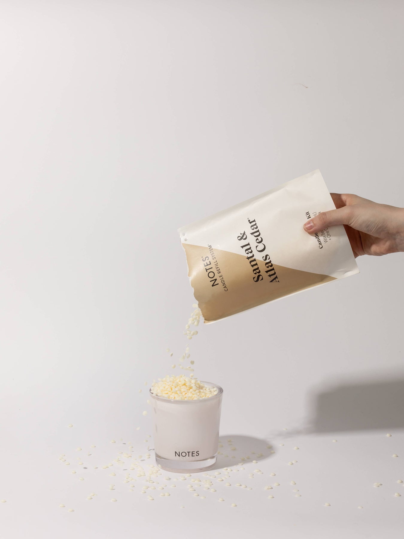 Each Candle Refill Kit includes a perfectly portioned bag of fragranced wax beads and a lead-free, cotton wick. Use this kit with your NOTES® Starter Candle and Silicone Cleanout Insert (sold separately) for room-filling fragrance you, and the planet, will feel good about.