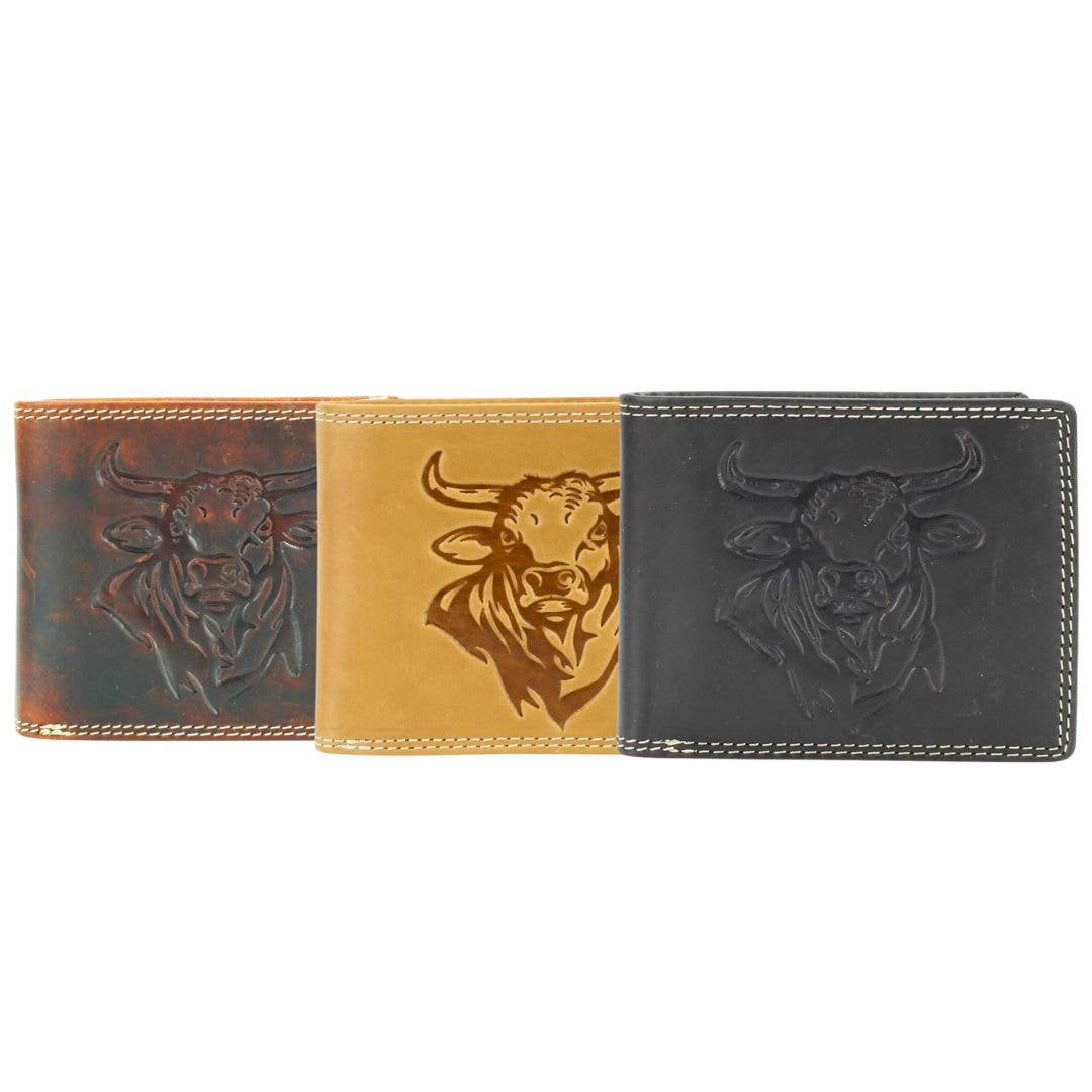 Oil Pull Up Embossed Steer Bifold Wallet ABB 006