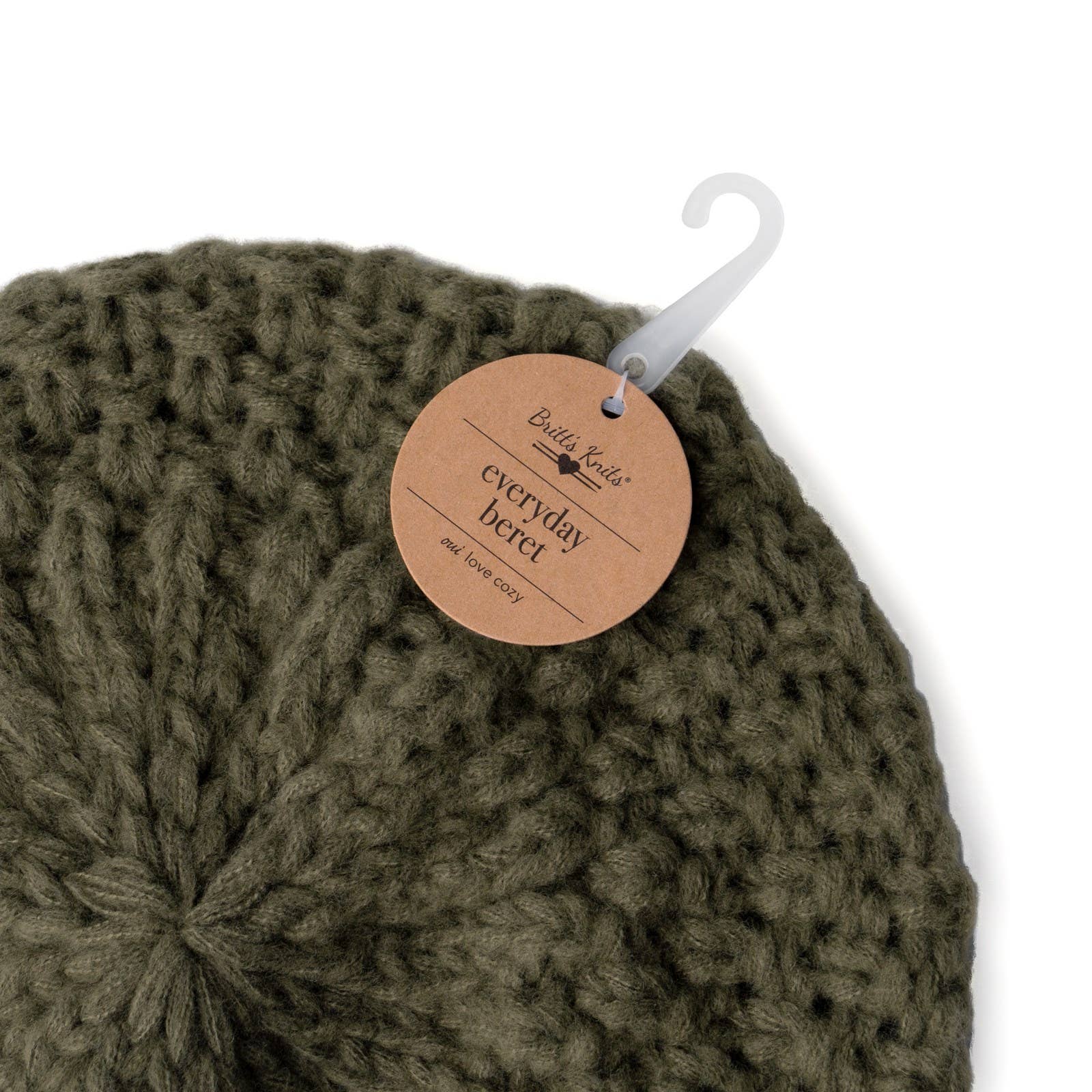 Britt’s Knits® Everyday Beret A cute crochet beret you can wear two ways and style with anything. Unique, unexpected and perfectly lightweight. -Slouchy crochet-style beret -Versatile styling – casual & fashionable -4 colors: olive, chestnut, black, ivory -24 piece assortment -Reorder by color in packs of 6 -One size fits most -Custom hang tag with j-hook