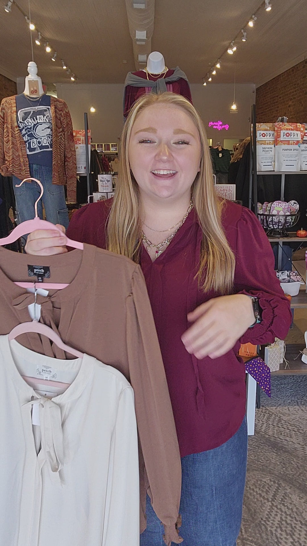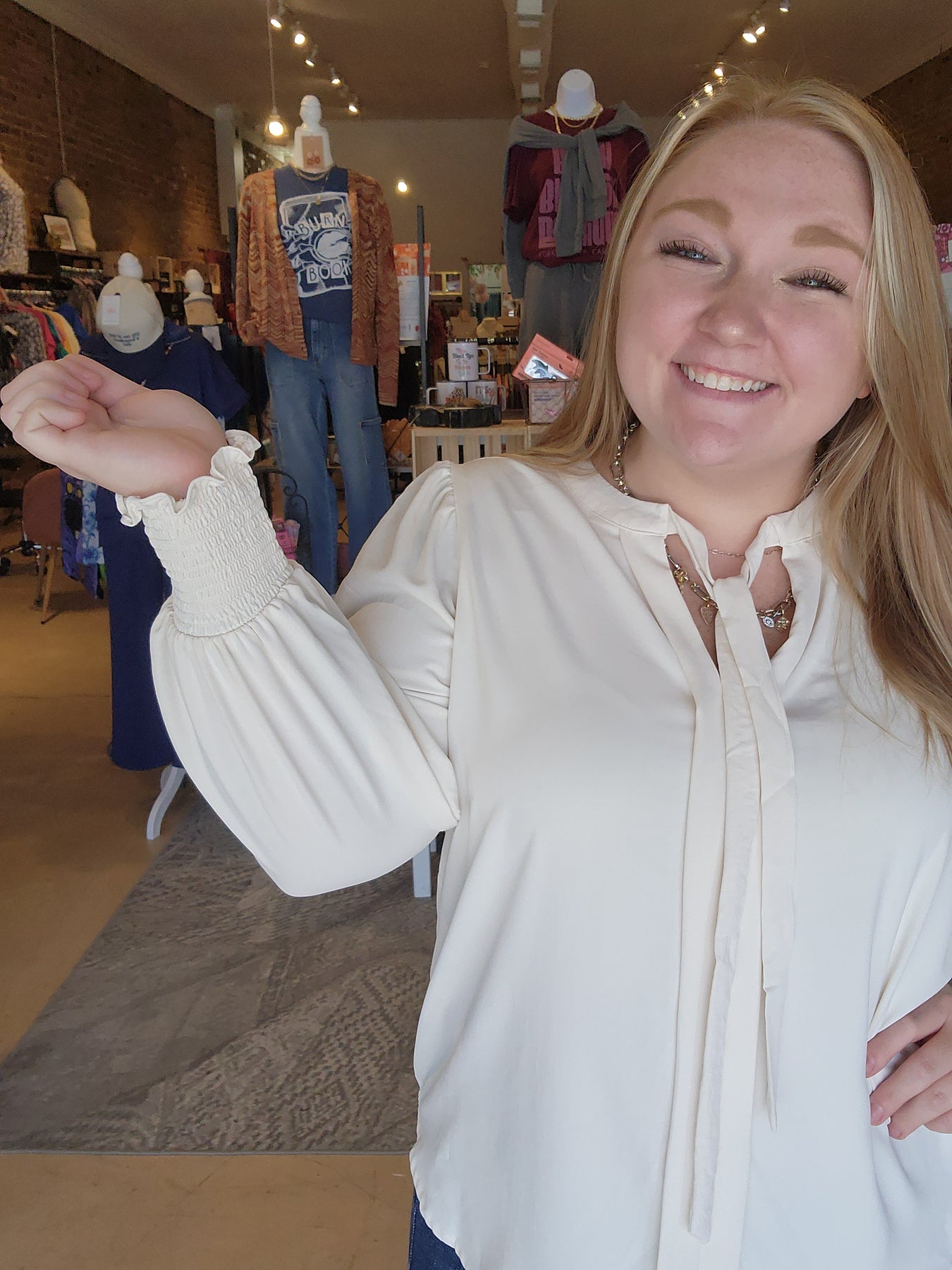 Embrace effortless elegance with this Tie Neck Front Pleat Blouse. Its timeless and classy design features a relaxed fit that stays true to size, offering comfort without any stretch. The fabric feels incredibly soft and flowy, making every move feel like a gentle breeze. Perfect for days when you want to look polished yet playfully chic!
