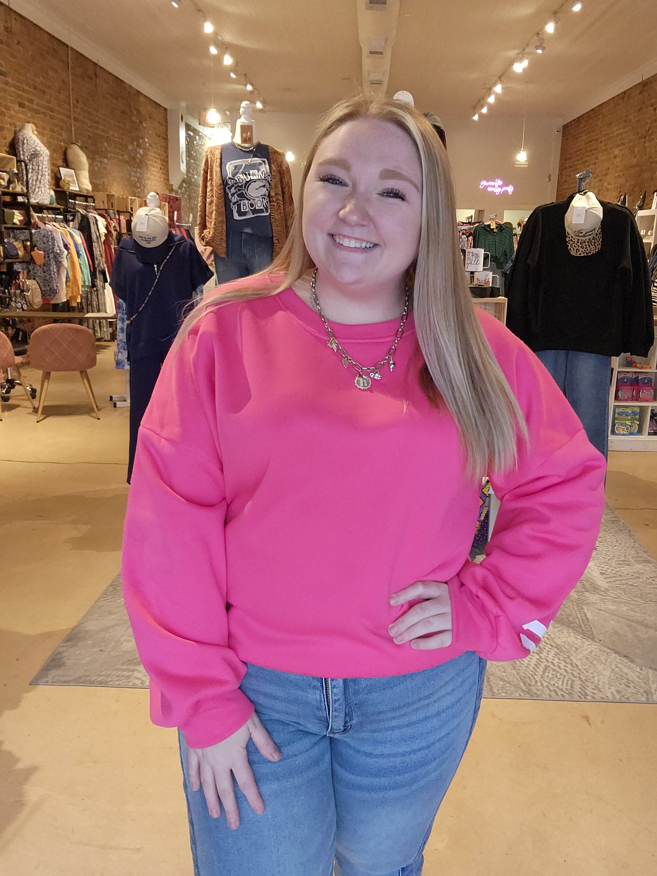 Spread some joy and love with our You Are Loved Pullover. This oversized top features a fun back design, perfect for effortlessly adding sweetness to any outfit. Get ready to turn heads and style it up in a playful and quirky way! Yummy scuba fabric!